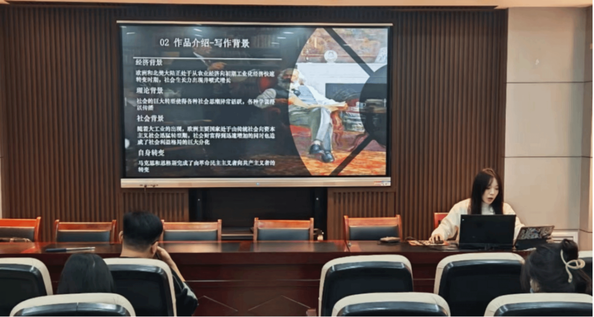 12月4日,马克思主义学院2025级研究生“读原著、学原文、悟原理”第四期读书分享会在文一802教室顺利举行。本次活动以“马克思的共产主义观“为主题,聚焦《共产党宣言》和《哥达纲领批判》两部经典著作,带领同学们深挖共产主义的核心内涵。